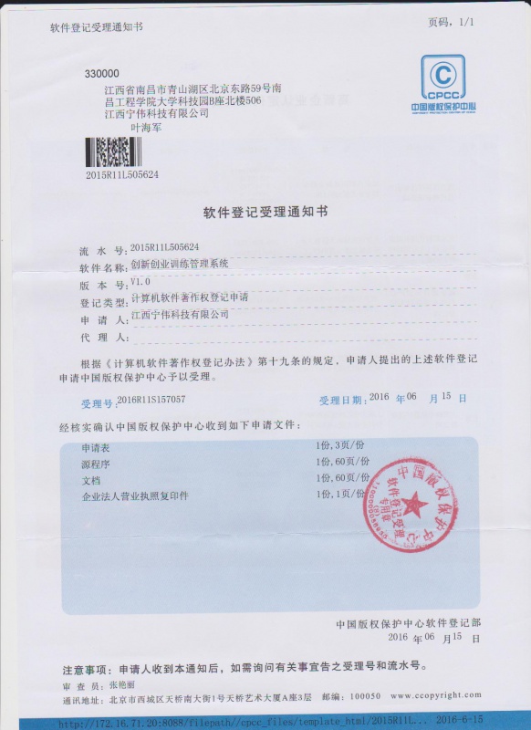 南(nán)昌市(shì)←±π科(kē)技(jì)和(hé)信息局于2016年(nián)06月(yuè)3&₽1日(rì)對(duì)我公司的(de)《科(kē)研項目管&©★理(lǐ)系統》軟件(jiàn)産品進行(xíng)審核,經審核,申報♣↓♥♦(bào)材料和(hé)相(xiàng)關內(nèi)容符合《鼓勵軟件(jiàγ☆€n)産業(yè)和(hé)集成電(diàn)路(lù)産業(yè)發展₹$↓¶的(de)若幹政策》和(hé)《軟件(jπ✘↔λiàn)産品管理(lǐ)辦法》的(de)有(yǒu)關規定,予以登記并頒發軟件δ♣(jiàn)産品登記證書(shū)。
